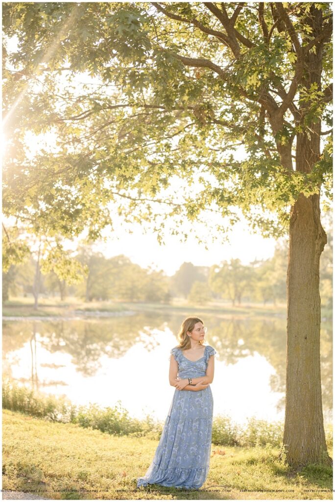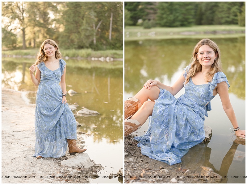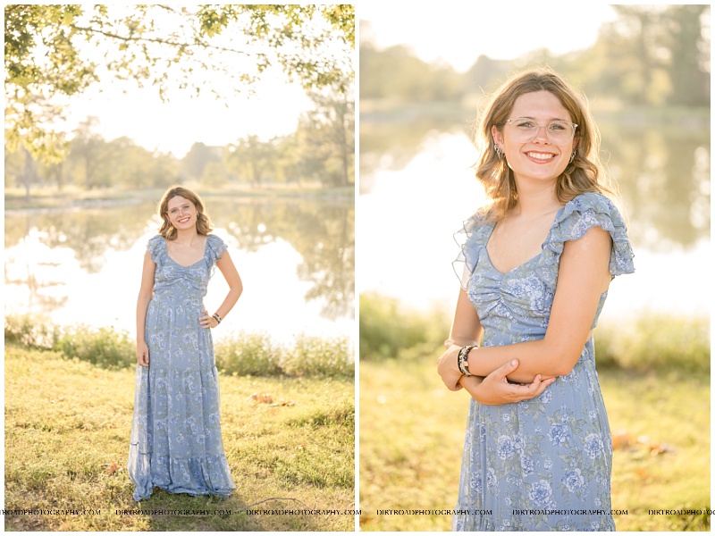 This is a great option for seniors who want a little bit of everything—from water to nature to clean, simple backgrounds all in one session. It also works beautifully during golden hour, when the light filters through the trees and reflects off the water for that soft, glowing look.